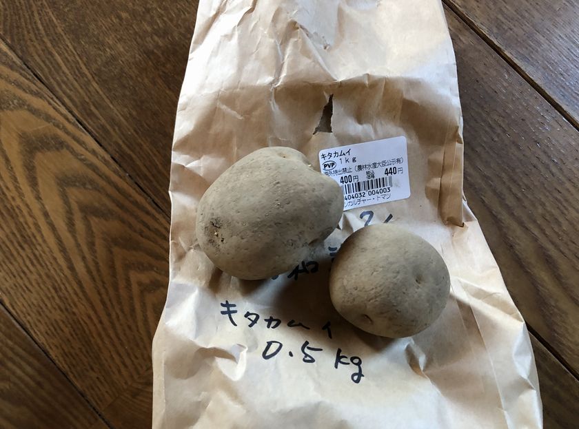 | きたあかり | ![]() | 男爵いも系のじゃがいもで、食感の特徴はホクホクしていて、煮崩れしやすい。 食べ方はコロッケ、ポテトサラダに向いています。キタアカリは甘味があり、シンプルなじゃがバタなどもおいしい。 | 1.5キロ(435円) キロ当たり290円 |