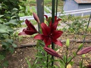 ユリも咲きだしバラが終わった庭に少しずつまたにぎわってきた