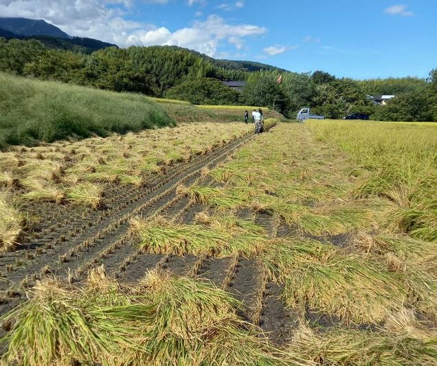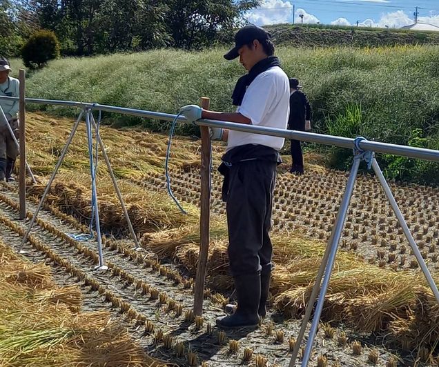 稲刈りから稲架(はさ)掛けの風景 (9月14日) 最終更新日時 : ひまわり 珍しくなった稲架かけ風景、今はコンバインでいっきに刈り取って籾にしてしまう方法が主流になってしまって、手間暇がかかる稲架かけが見られなくなってきています。刈ると同時に藁は縛られて出てきます、これを機械がしてくれるようになってずいぶん楽になったこのことです。この風景いつまでも続いてほしいと願っています近くのSさんの田んぼの風景です(N.S.さんに撮影お願いいたしました) 作業始まり 稲が縛られて 稲架かけ準備 作業もう少し? 作業終了 稲核(いねこき) (9月29日) 2週間後に稲核 おいしいお米になります \ 最新情報をチェック / FacebookXBlueskyHatenaCopy