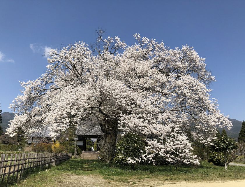 樹齢約350年で花ごとに花弁の枚数が違う珍しい桜