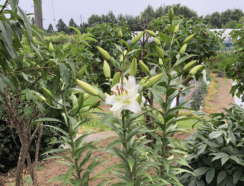 昨年のこぼれ種からあさがおが咲いてきた。カサブランカもぼちぼち。